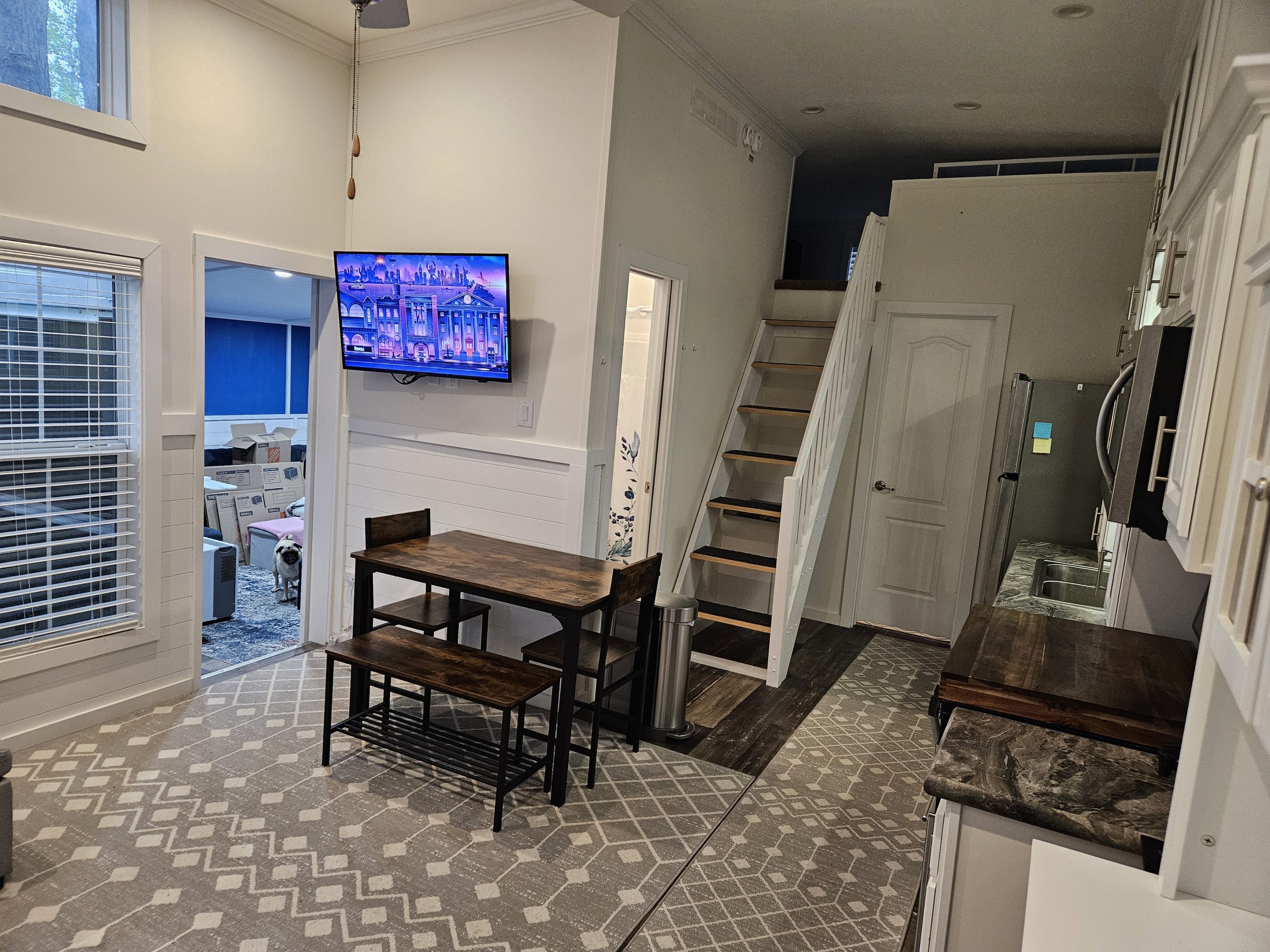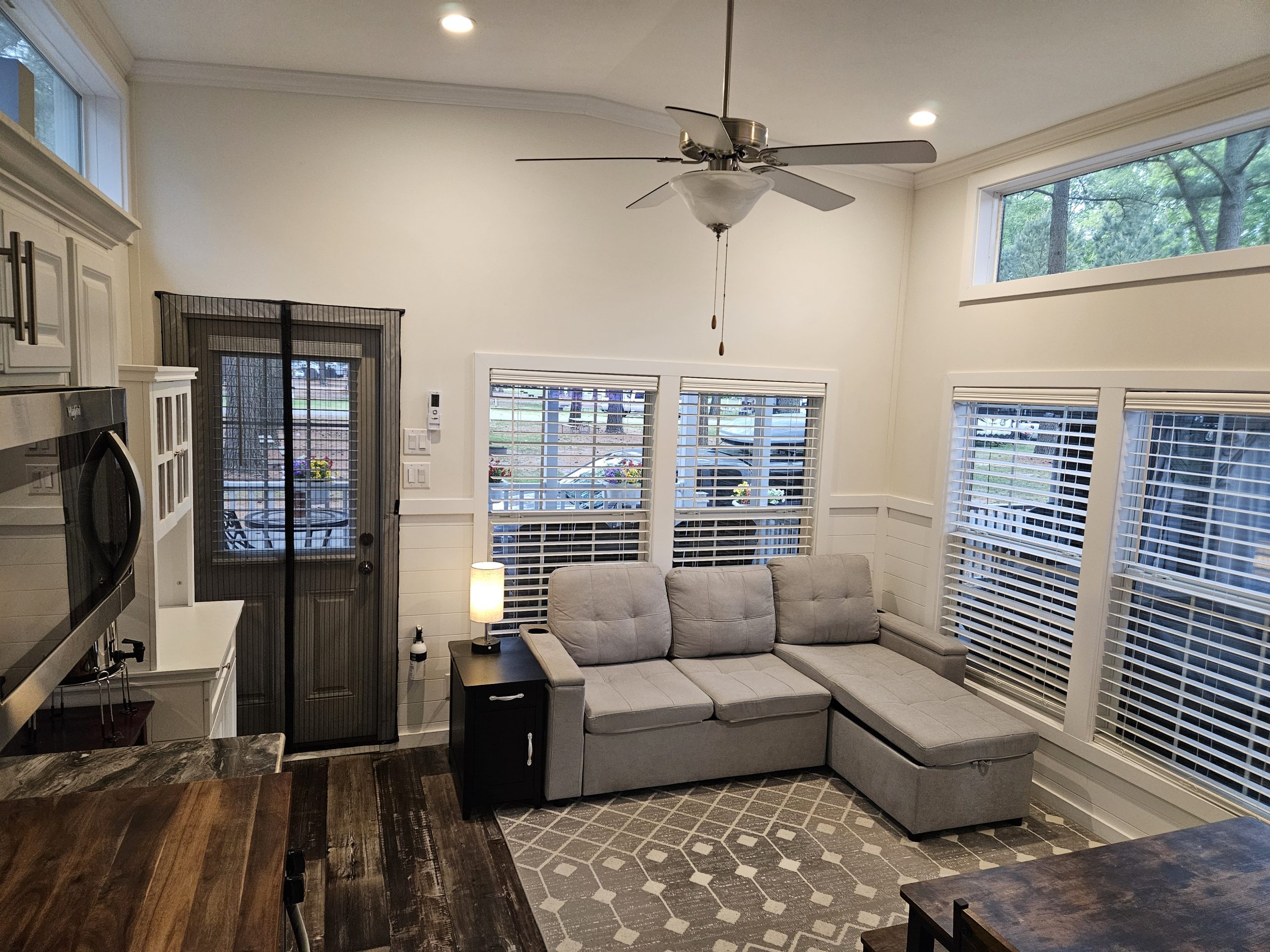 Inside, this beautifully maintained cottage is built for hosting. Featuring 2 bedrooms, 2 full baths, and soaring vaulted ceilings throughout, the space feels bright, open, and inviting from the moment you walk in. The layout is ideal for families and guests, with a king bed in the primary, a queen in the loft, and plenty of additional space for extra sleeping arrangements.