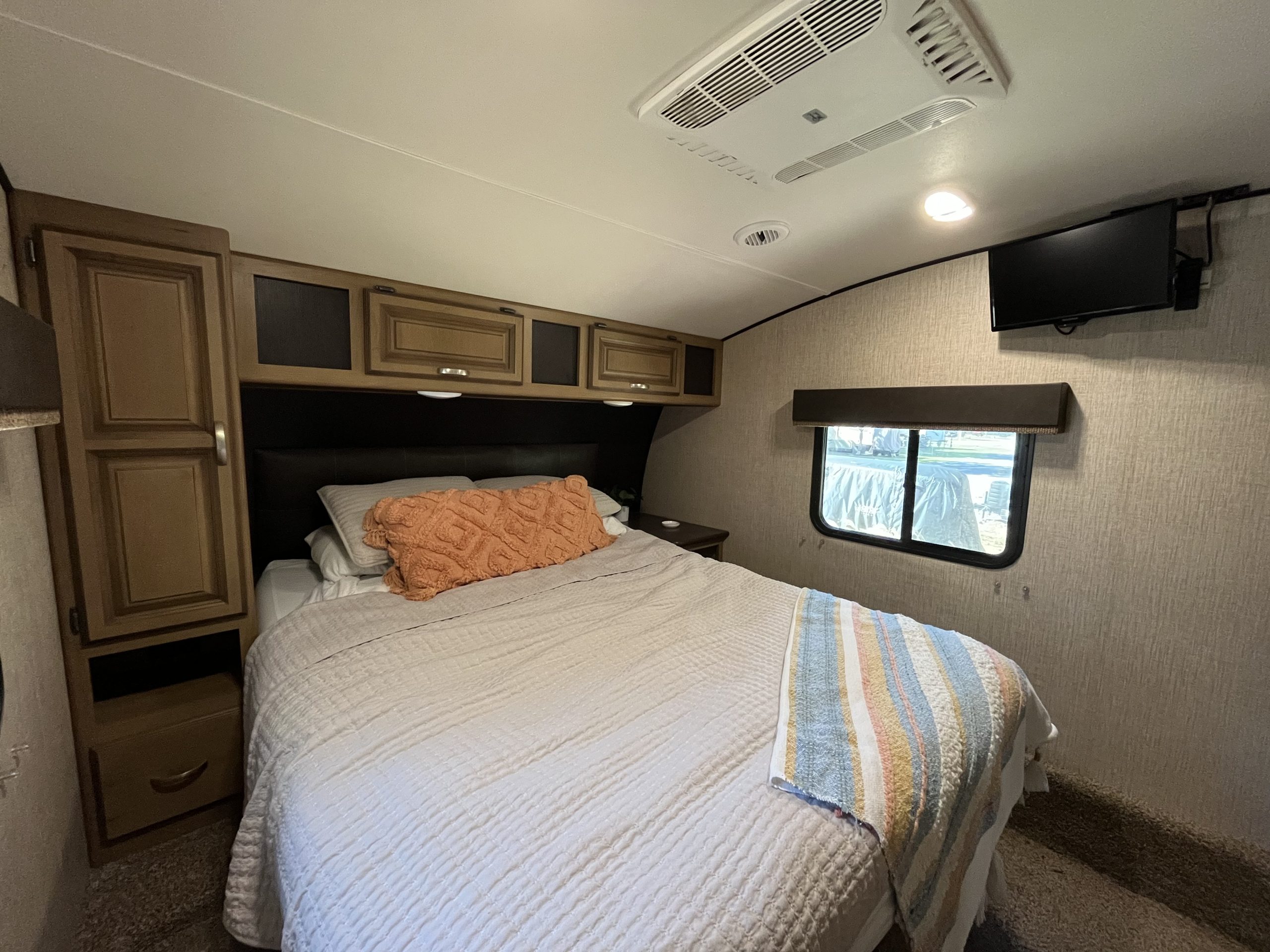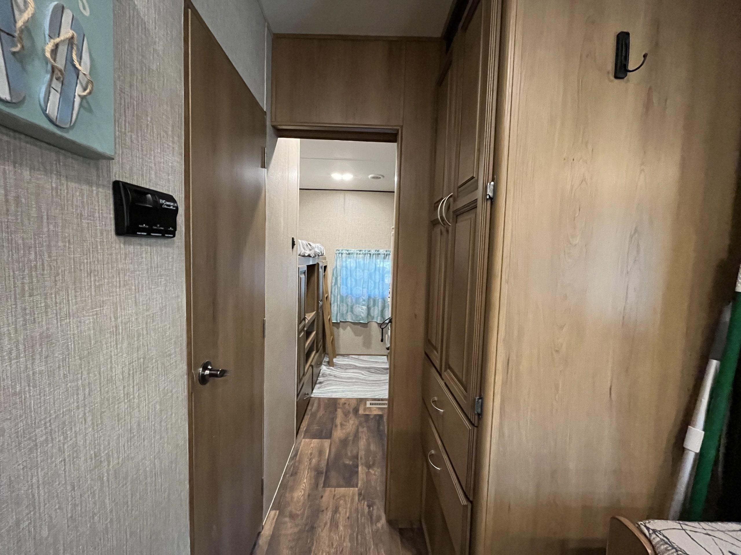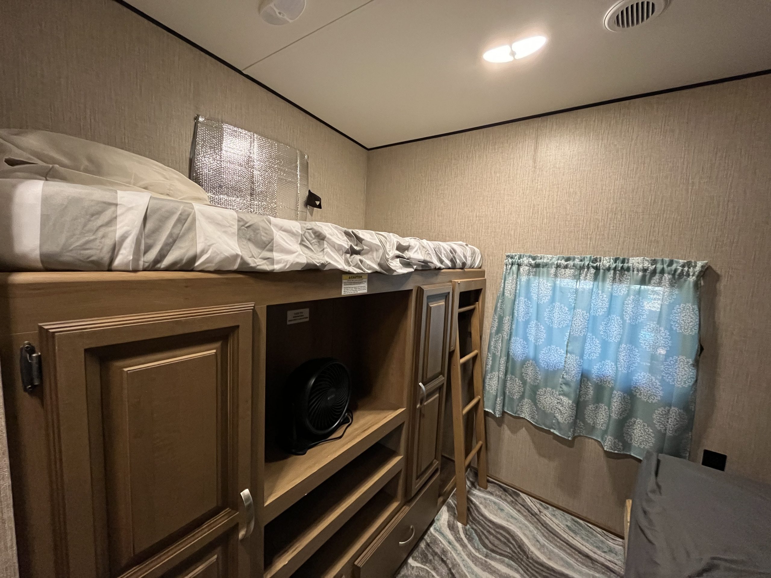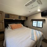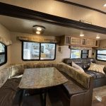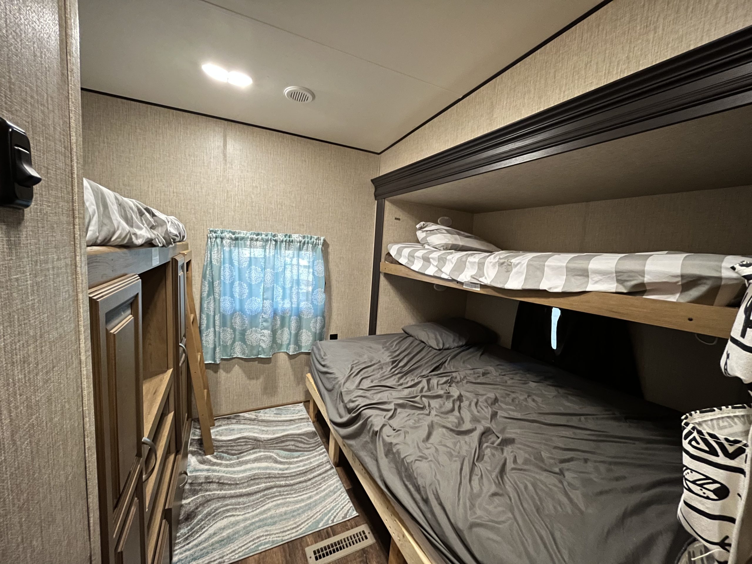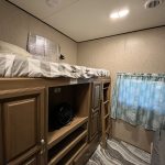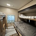 Inside, you’ll find an open and inviting floor plan with a spacious dinette and comfortable living area perfect for relaxing or entertaining. The bunkroom includes three beds, offering ample sleeping space for kids or visitors, while the primary bedroom provides a cozy retreat with generous storage.