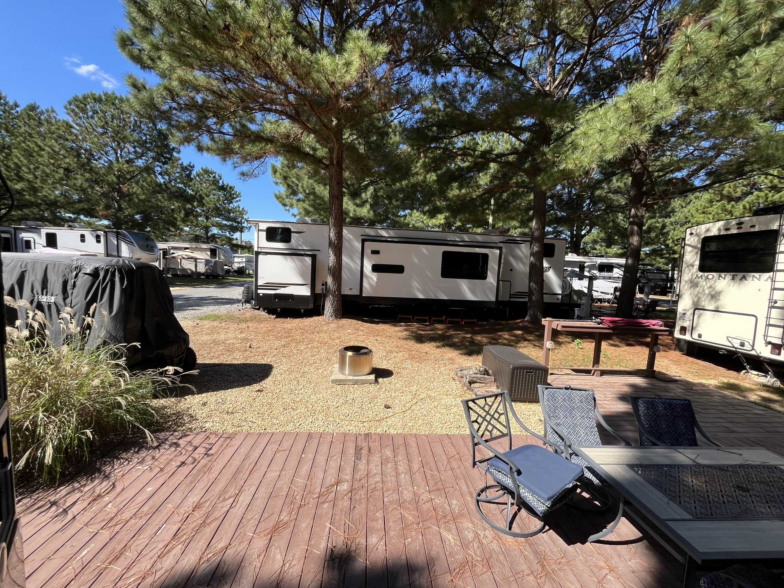 Nestled in the highly desirable “Berries” section of the park, this shaded lot offers the perfect combination of comfort, convenience, and outdoor charm. The 2017 Crossroads fifth wheel features 2 bedrooms and 1.5 bathrooms, providing plenty of space for families or guests.
