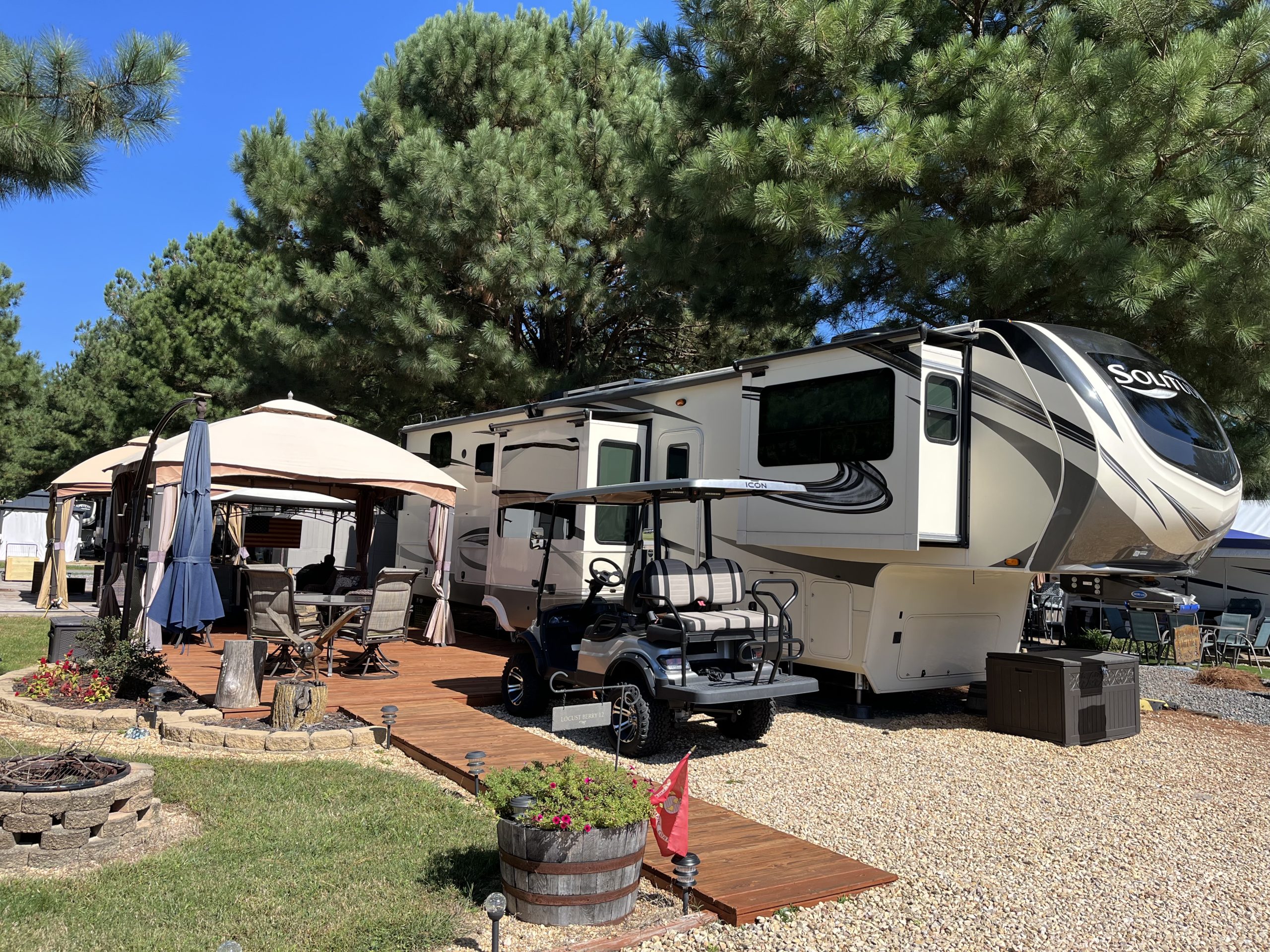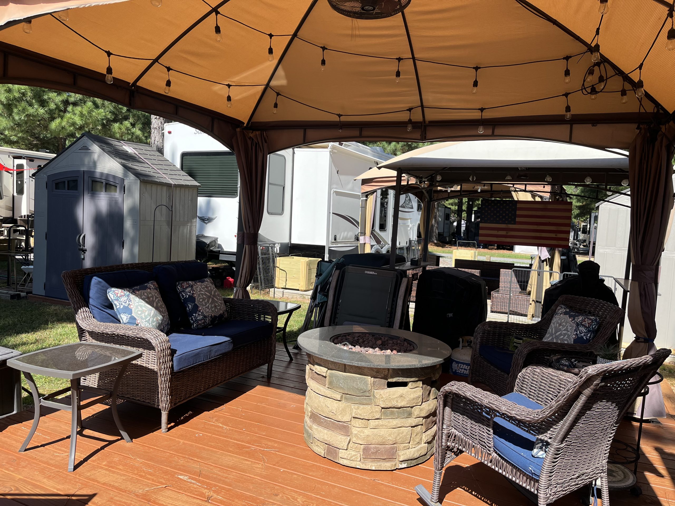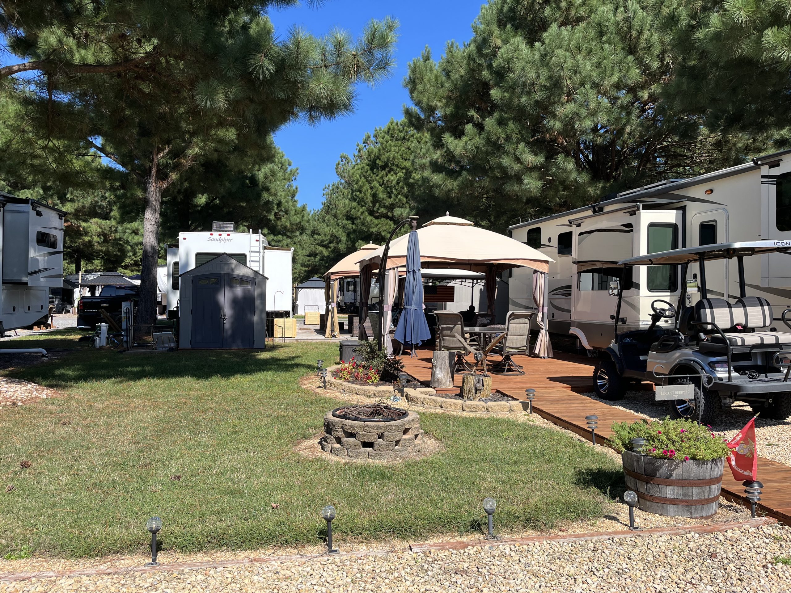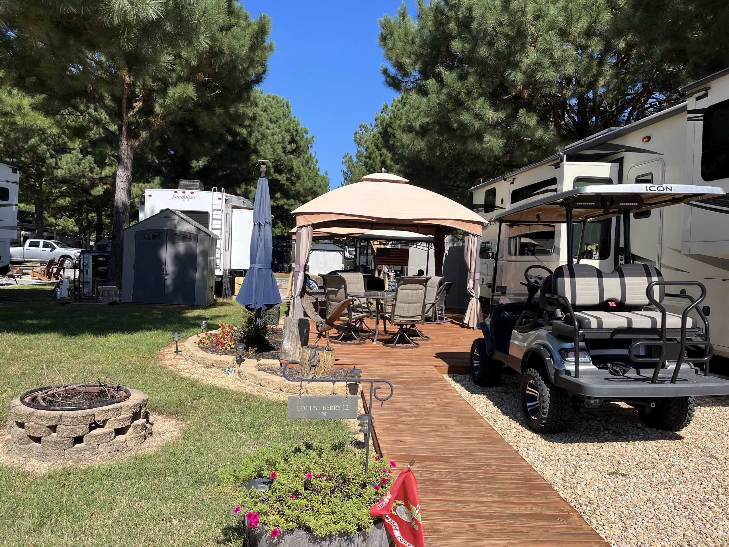 This listing is truly a turn-key package. Along with the RV, you’ll also receive the deck, shed, 2023 Icon golf cart, lawn mower, two gazebos, Blackstone grill, and outdoor furniture—everything you need to settle in and start enjoying resort life right away.