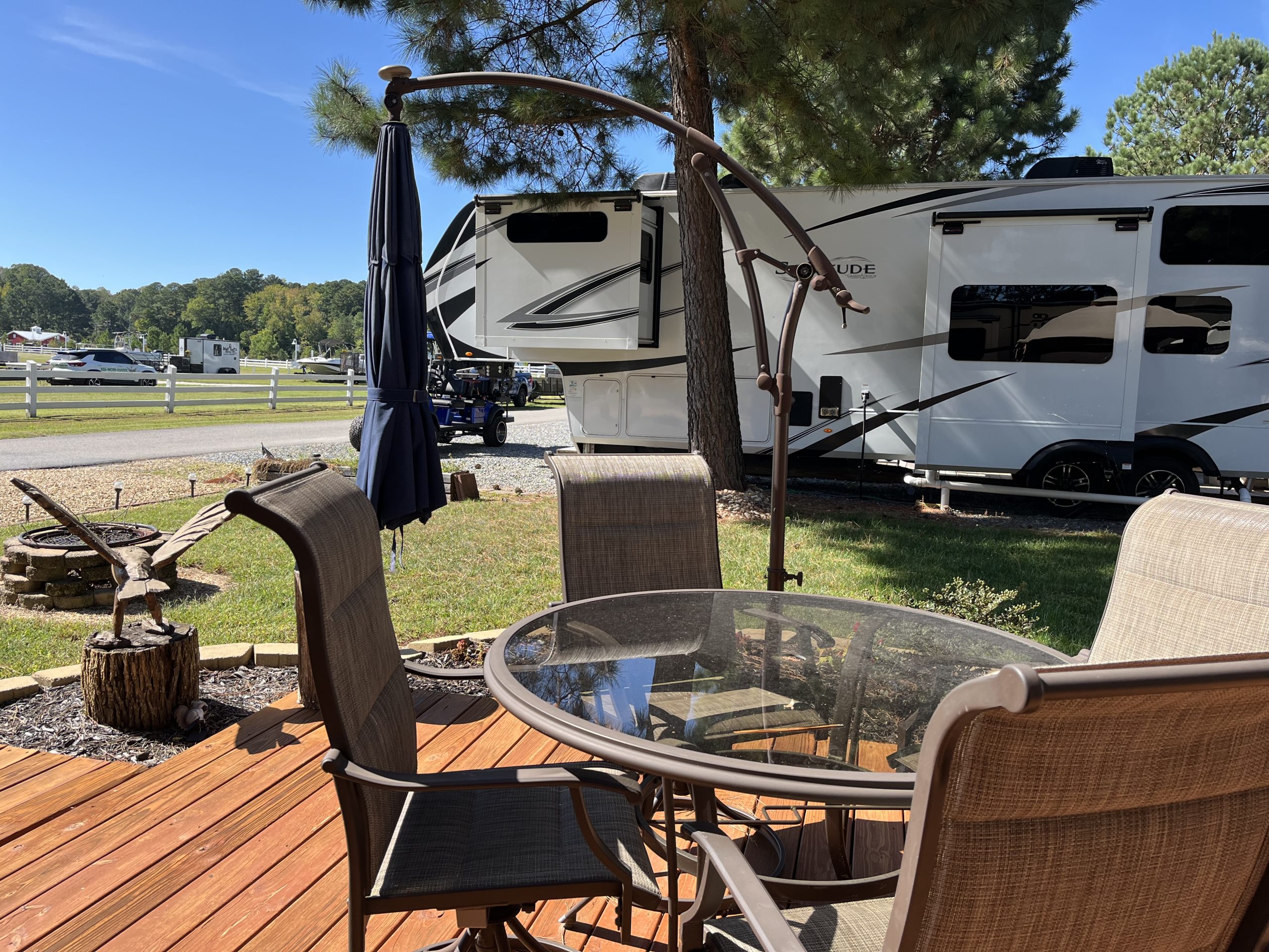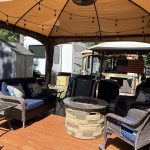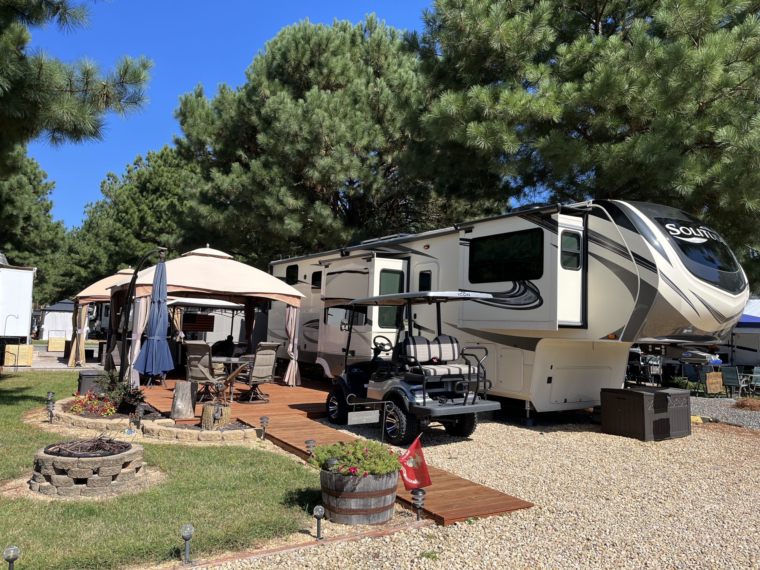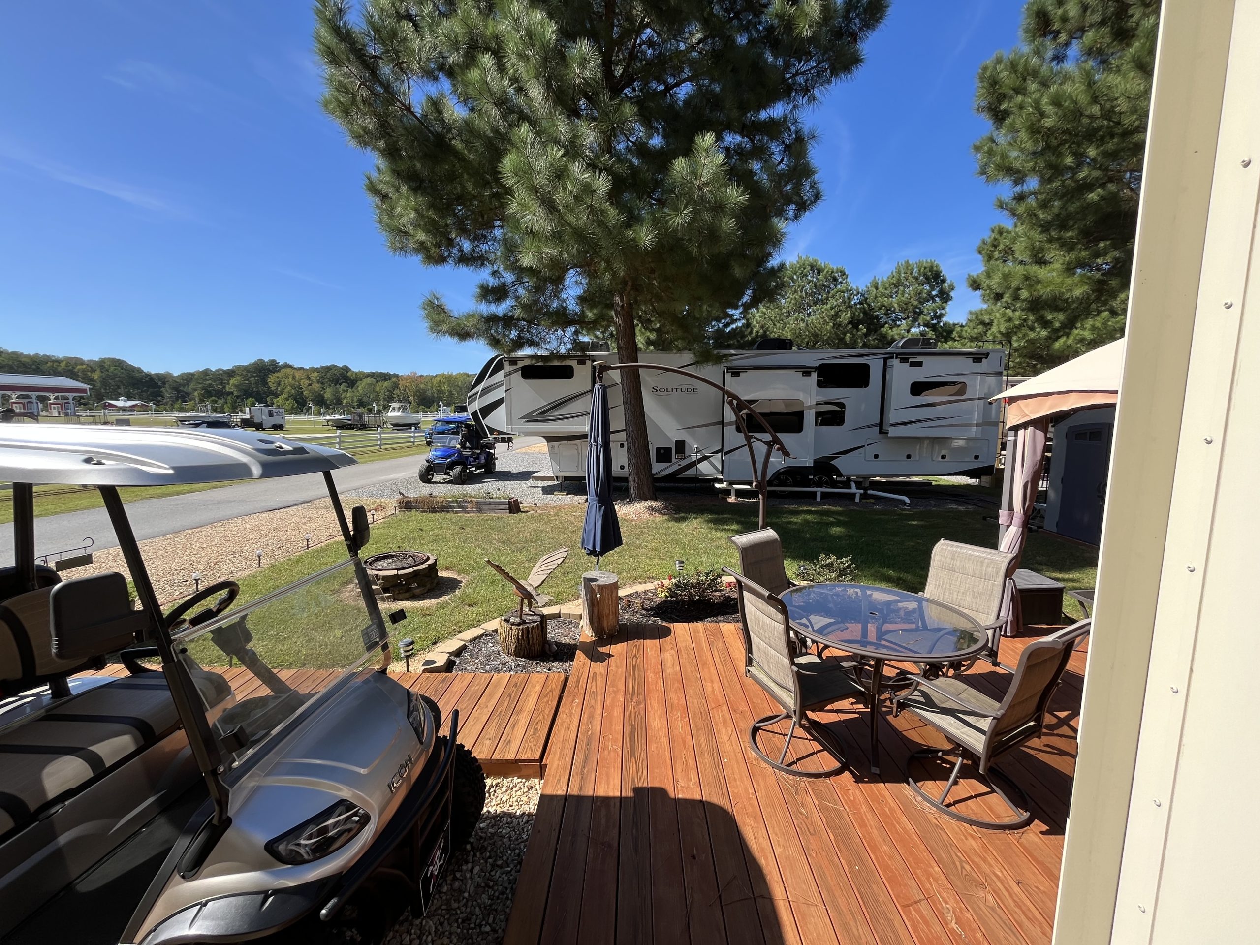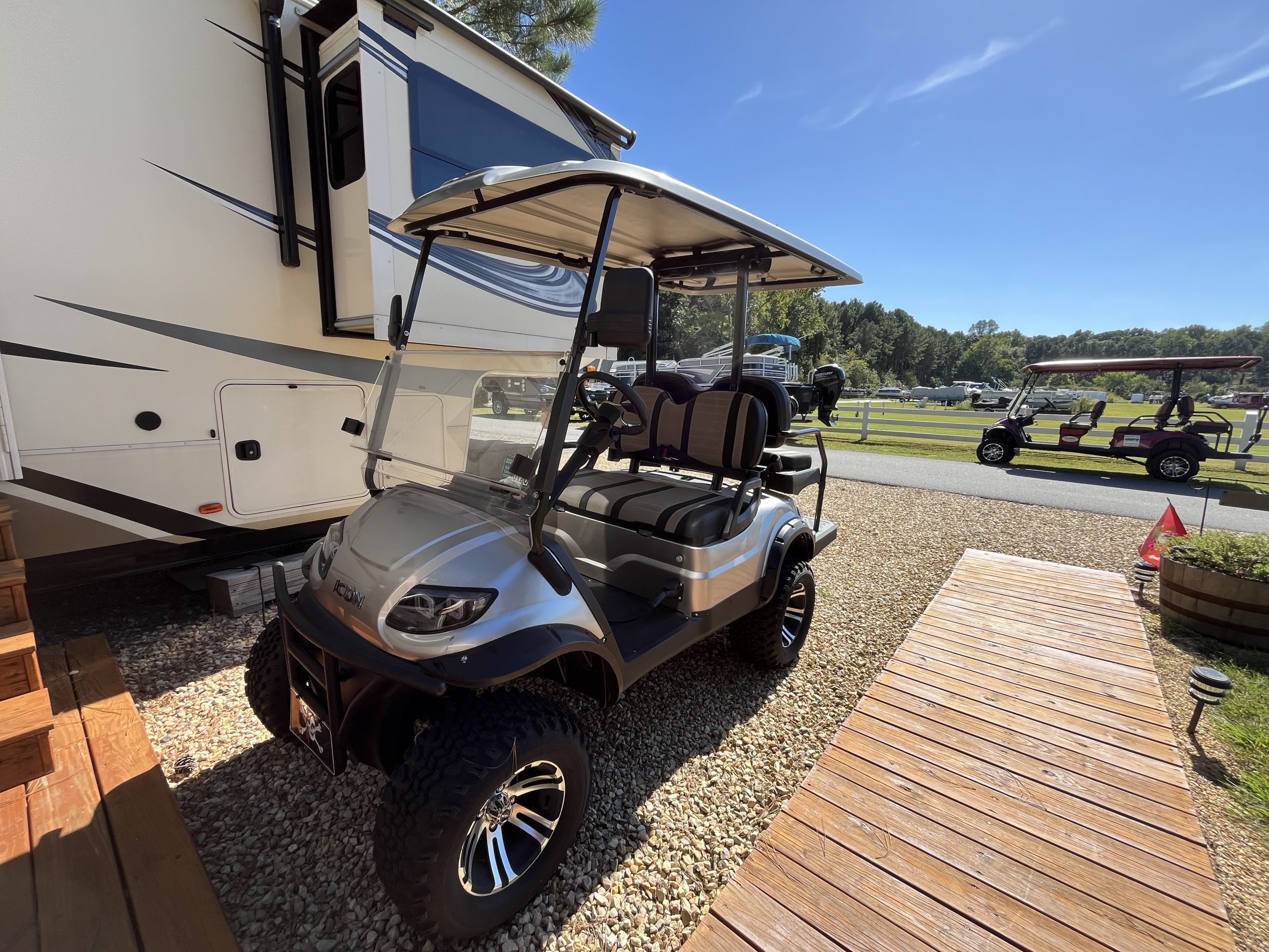 This listing is truly a turn-key package. Along with the RV, you’ll also receive the deck, shed, 2023 Icon golf cart, lawn mower, two gazebos, Blackstone grill, and outdoor furniture—everything you need to settle in and start enjoying resort life right away.