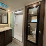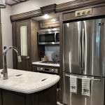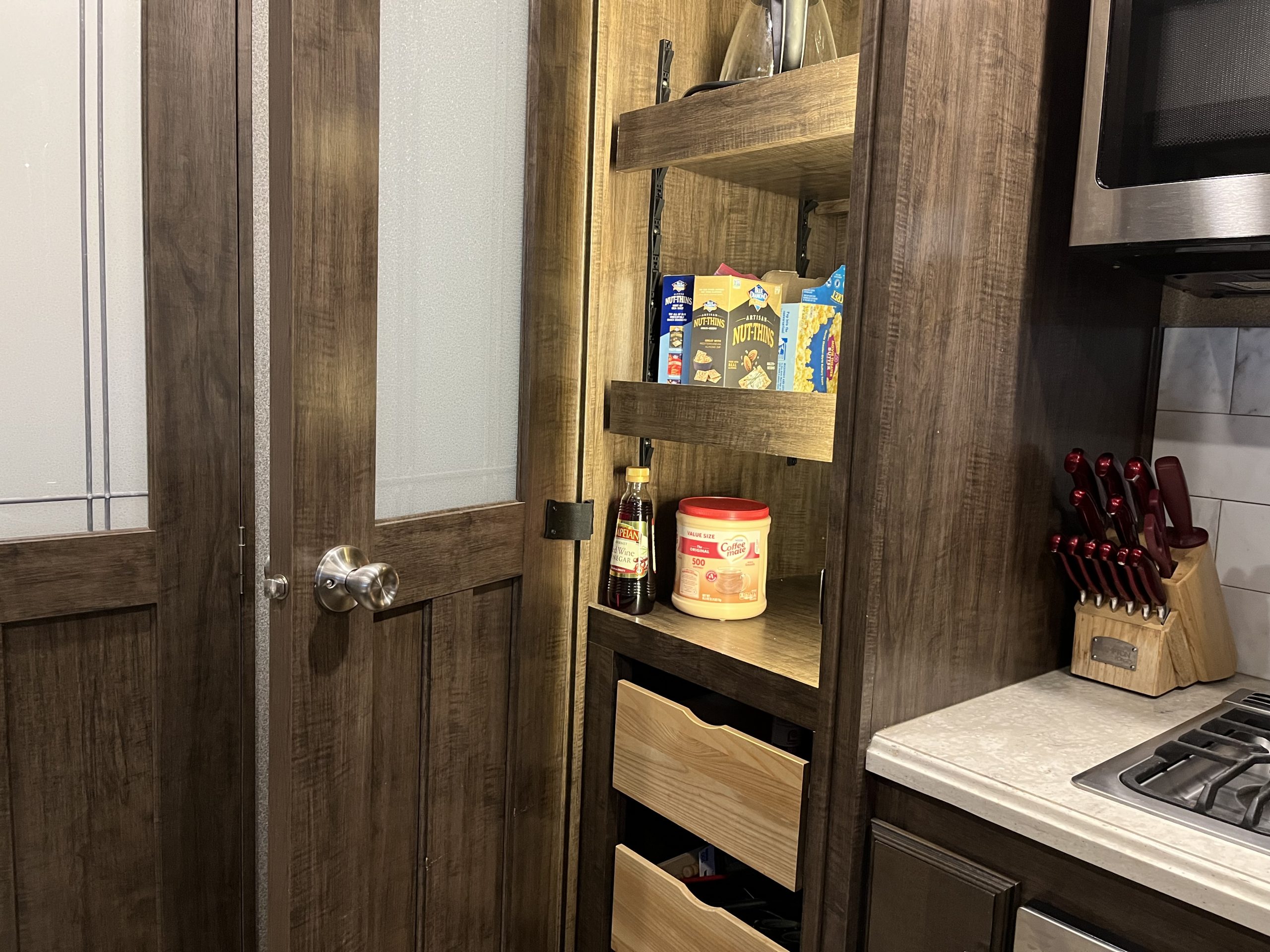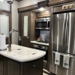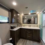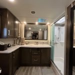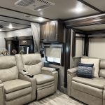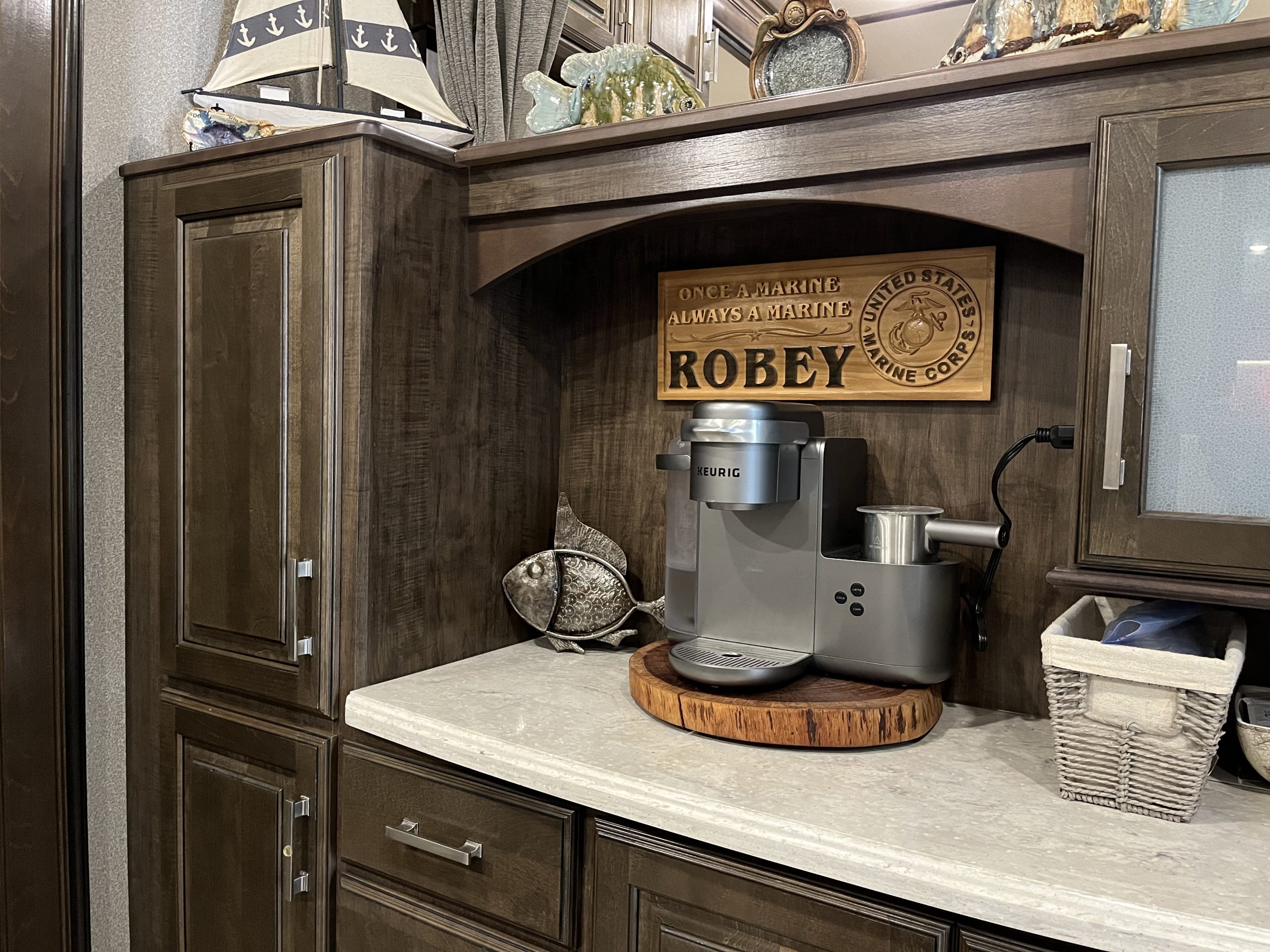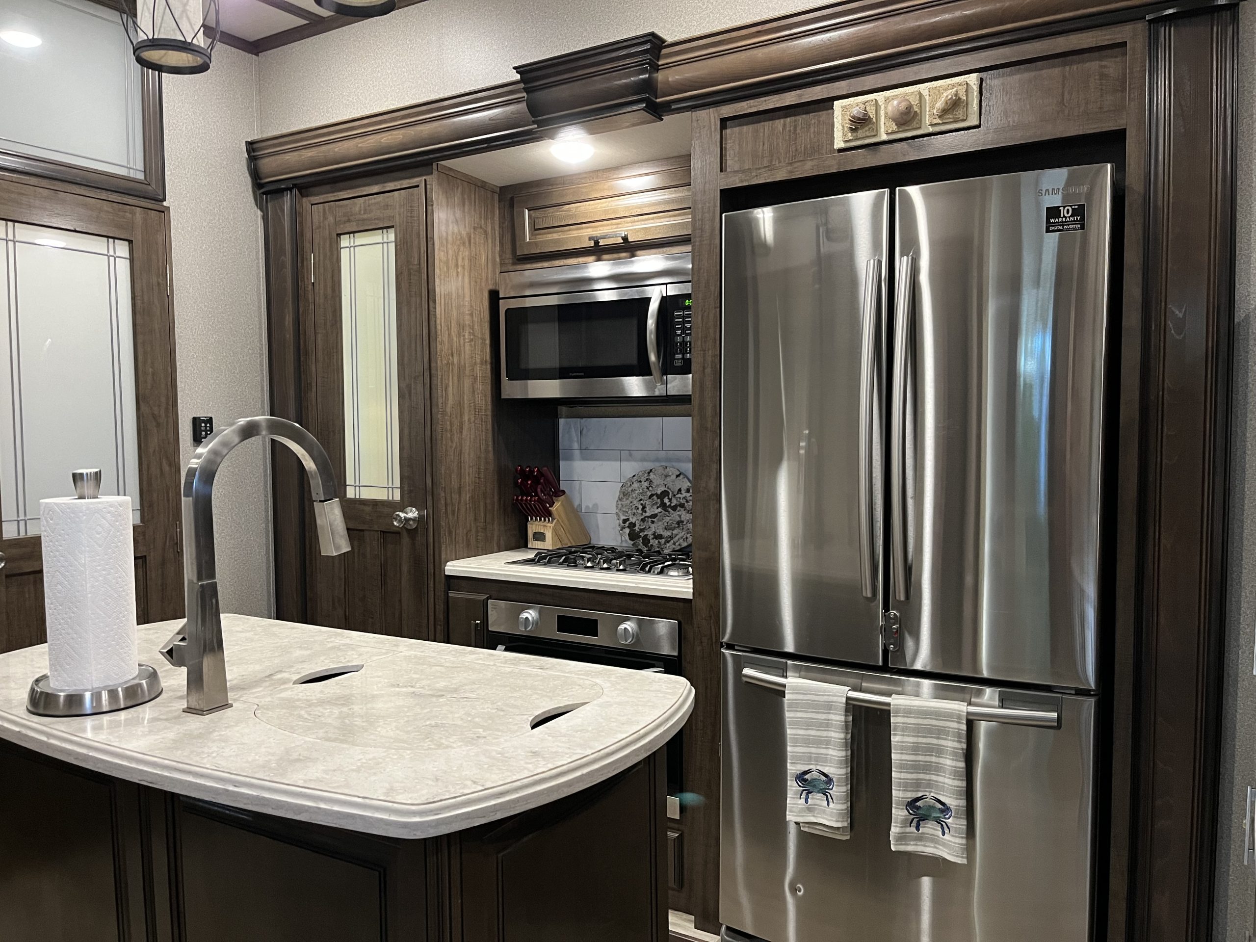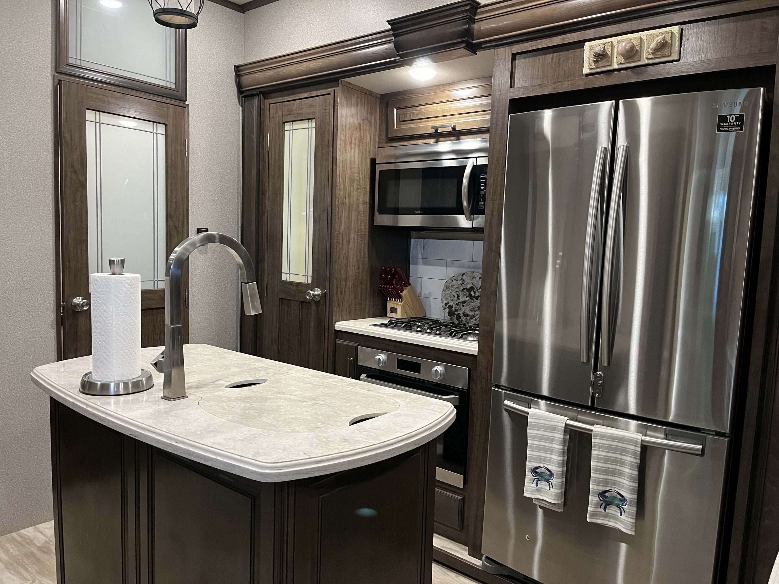 Featuring 1 bedroom and 1.5 bathrooms, this retreat is ideal for couples looking for comfort and space. The front living room creates the feel of a true home—not just an RV—with its generous seating and open layout. The master suite is a dream come true, offering abundant storage and a gorgeous ensuite bathroom designed with both style and functionality in mind.