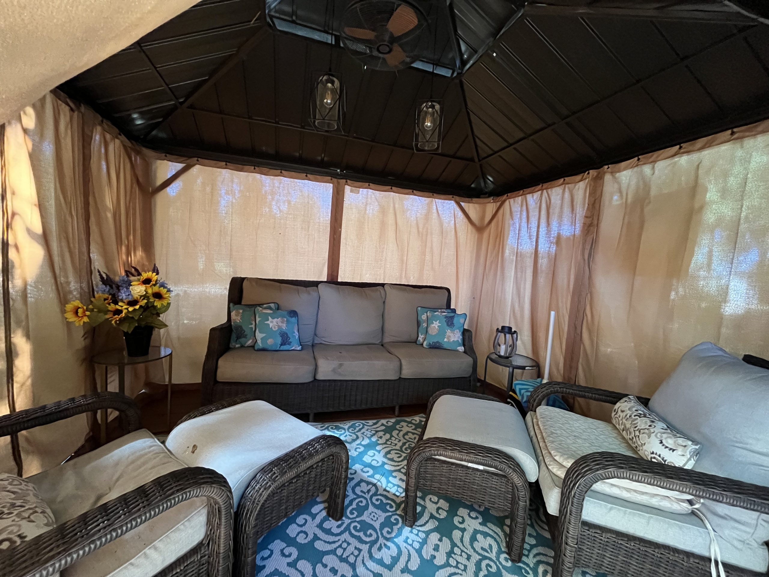 Home Features: Shaded lot, gravel parking, gazebo, shed, screen room, mini-split A/C, TWO golf carts, move-in ready