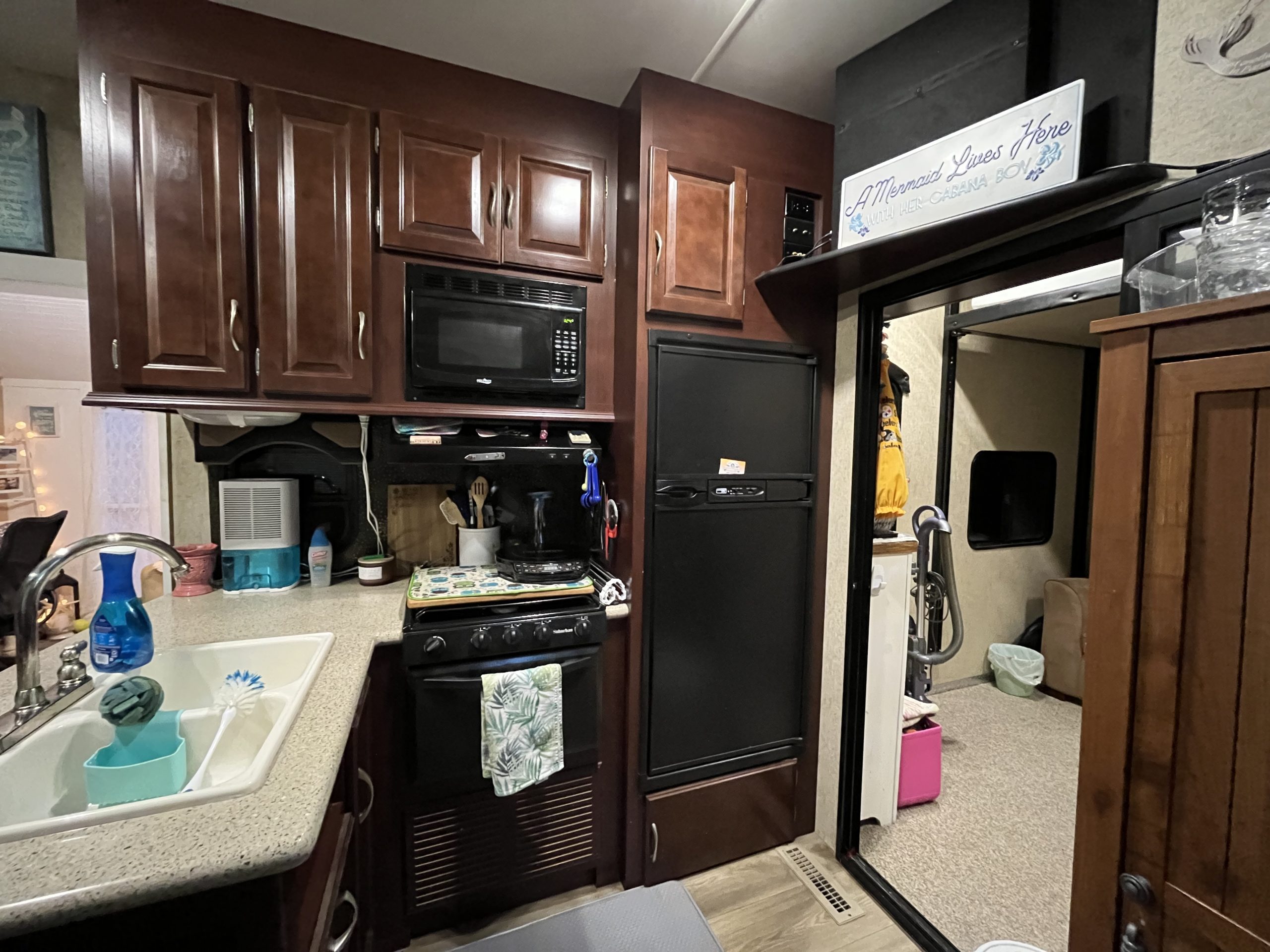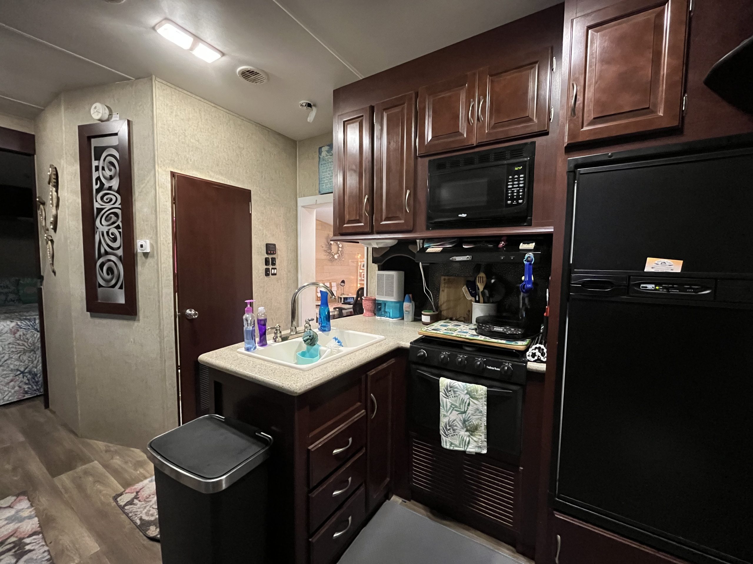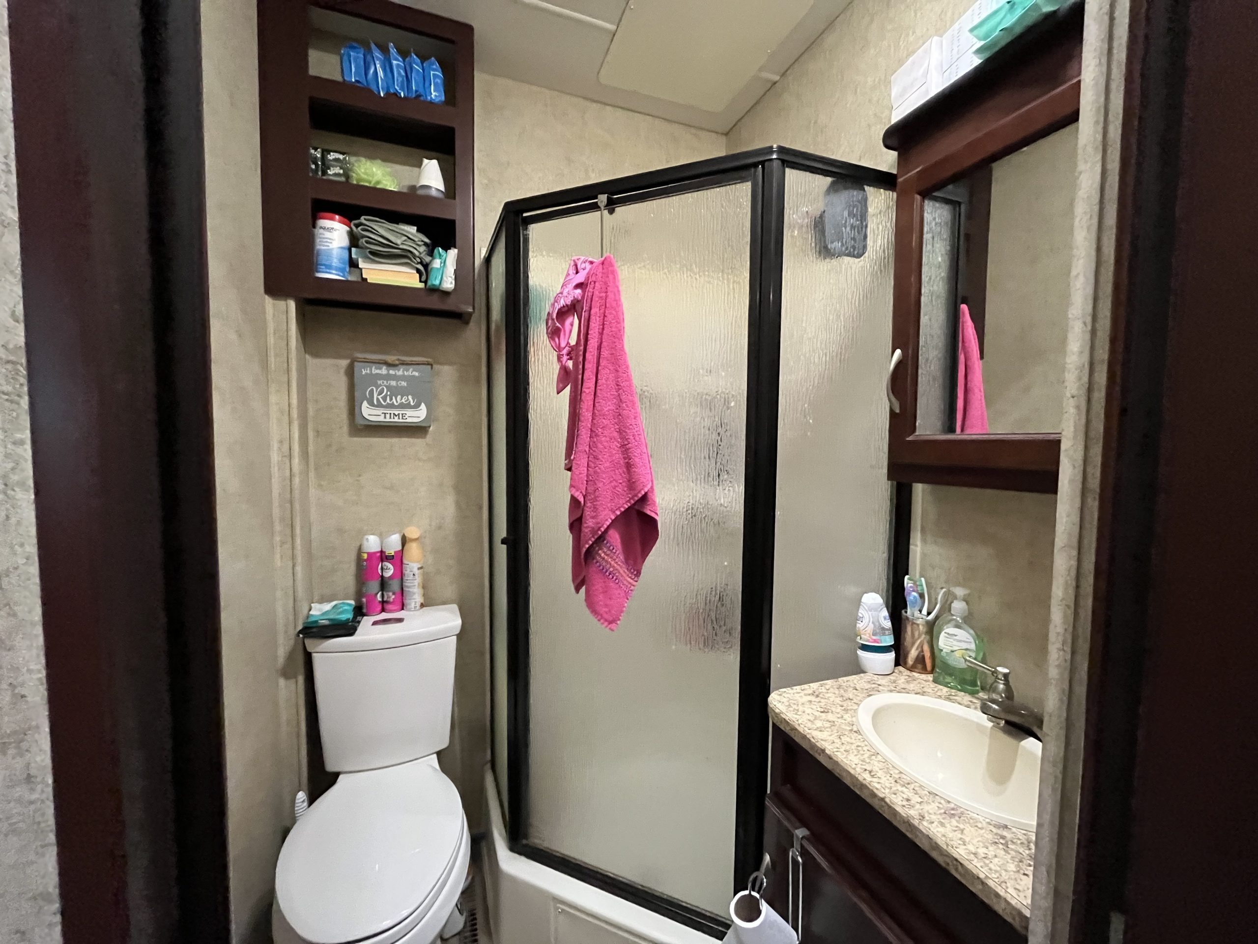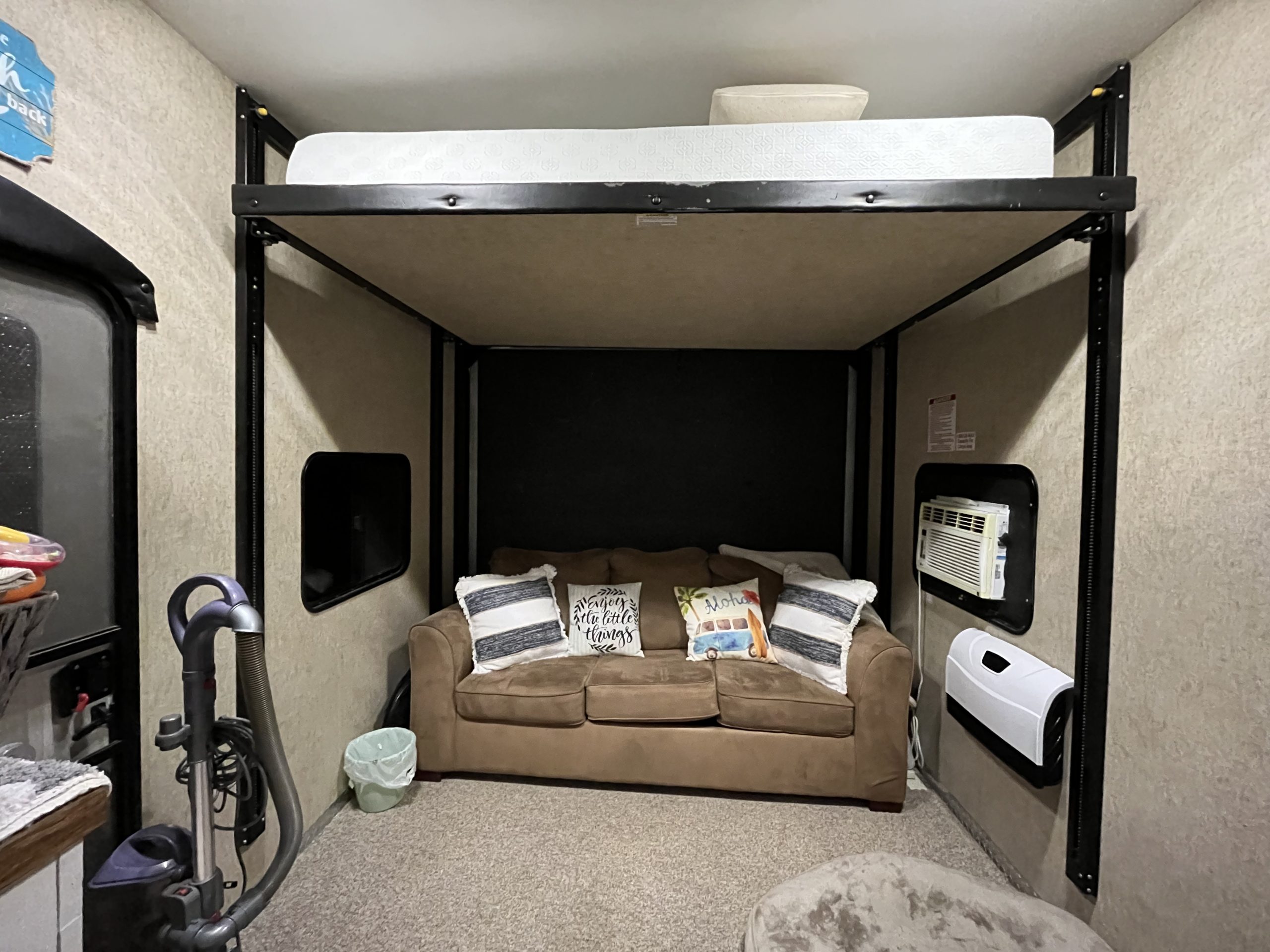 Featuring 3 bedrooms and 1 bathroom, this vacation home also includes a spacious screen room for relaxing or entertaining family and friends. As a toyhauler model, it offers incredible flexibility—the rear room can be transformed into whatever you need most: another master bedroom, a cozy living space, storage, or even a hobby area.