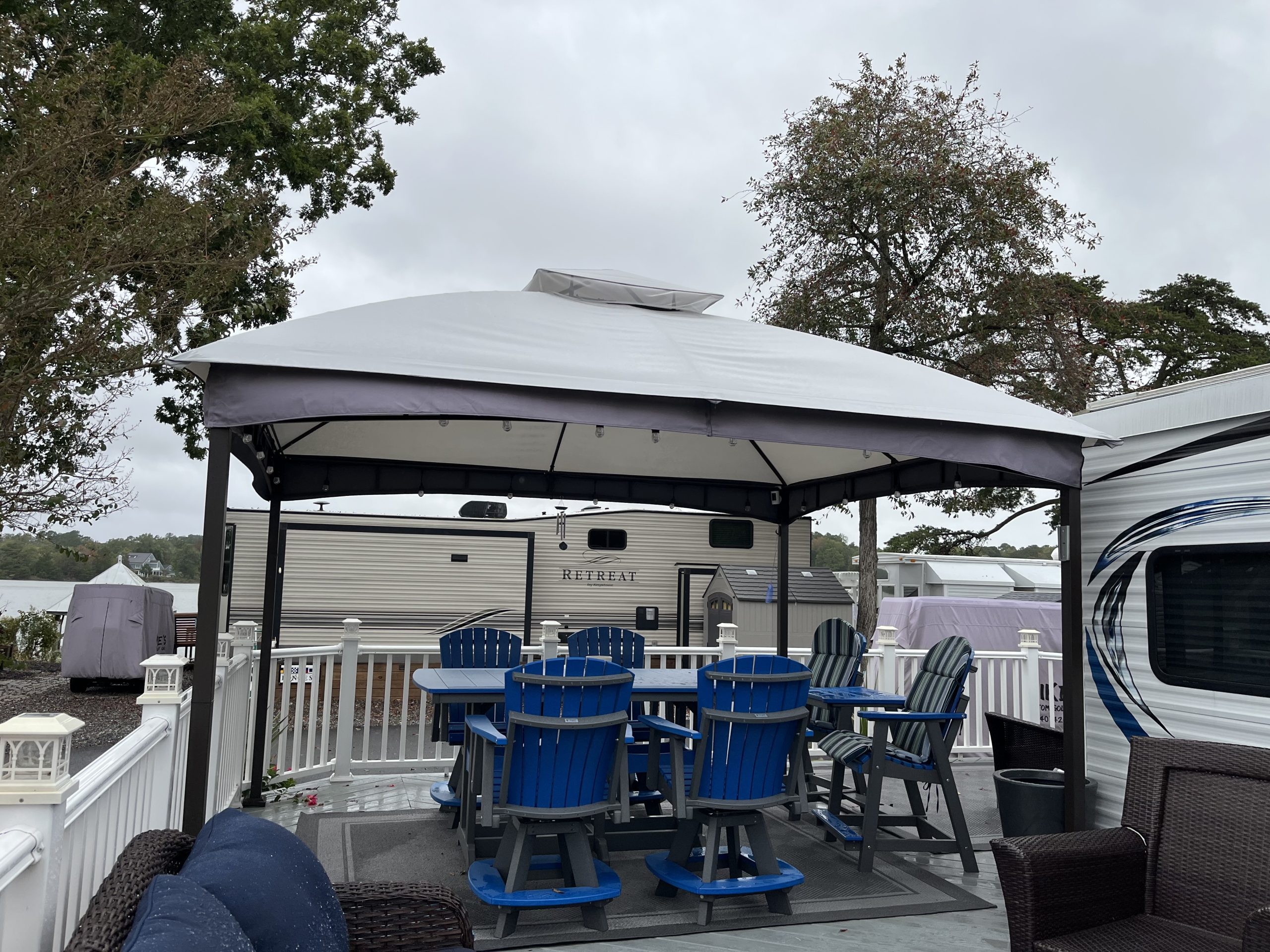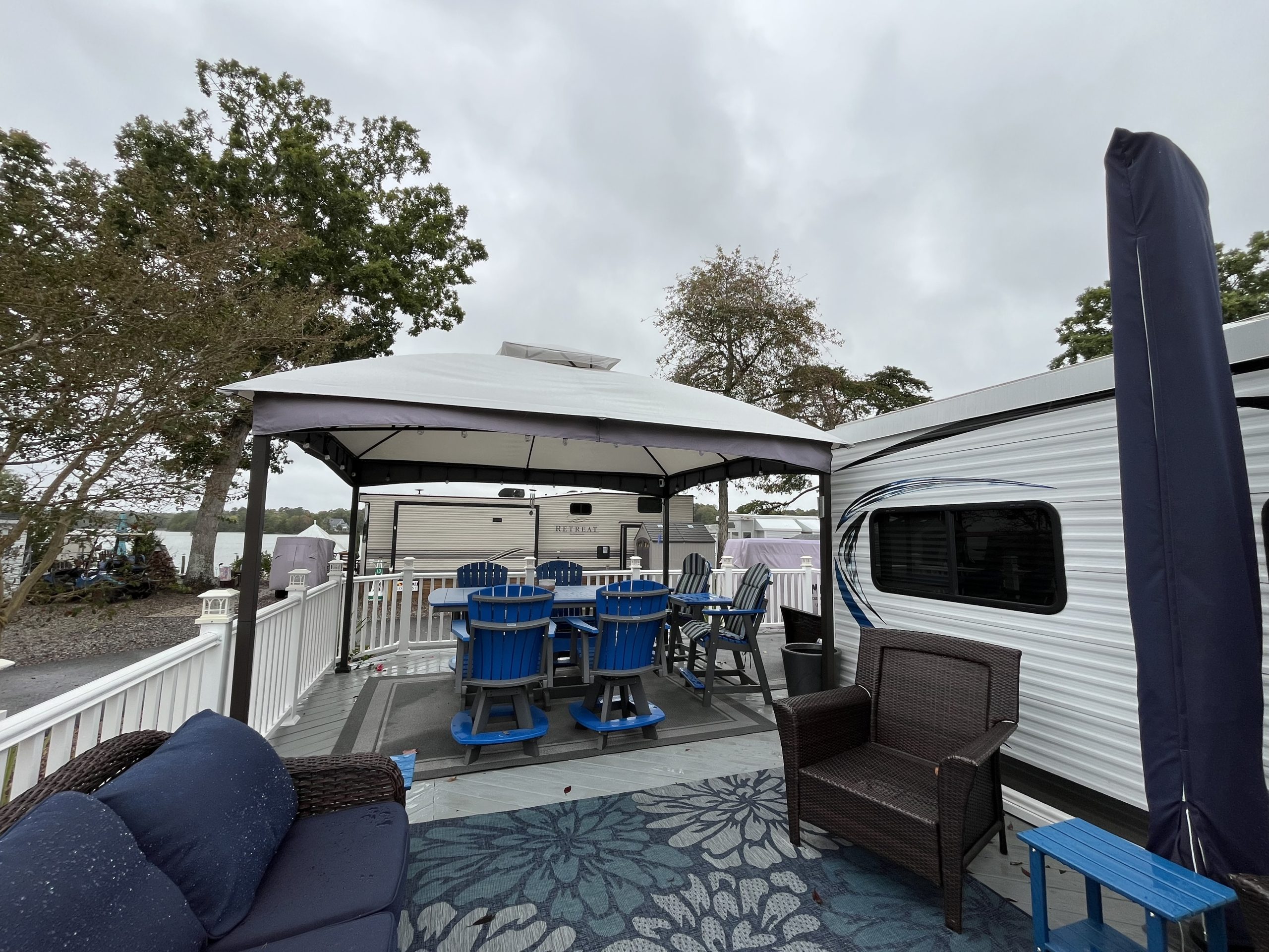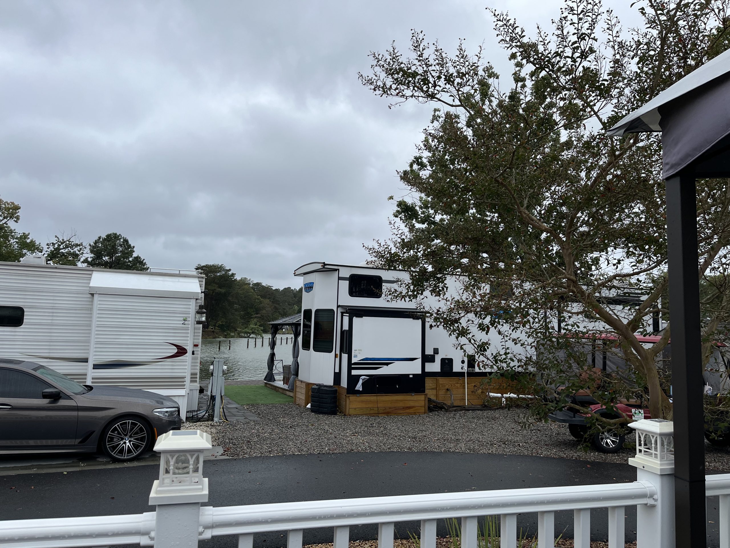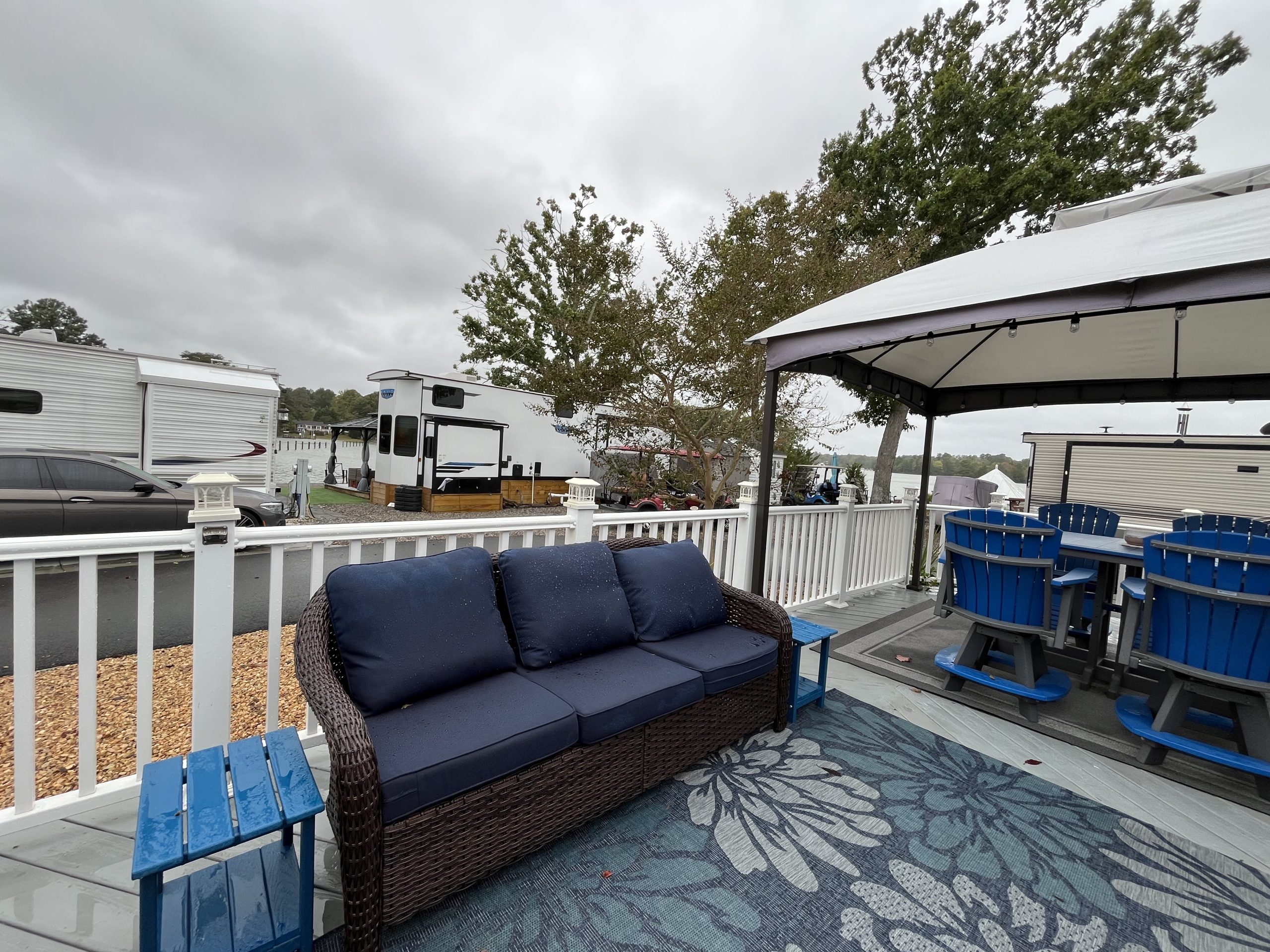 Welcome to Spruce 08, featuring a beautifully maintained 2016 Hyline Park Model with an added screen room for extra living space. Situated on a large gravel corner lot in the desirable Point section of the resort, this property offers beautiful waterviews of Robinson Creek, which opens into the Rappahannock River — the perfect backdrop for stunning sunsets and that true “vacation life” feel.