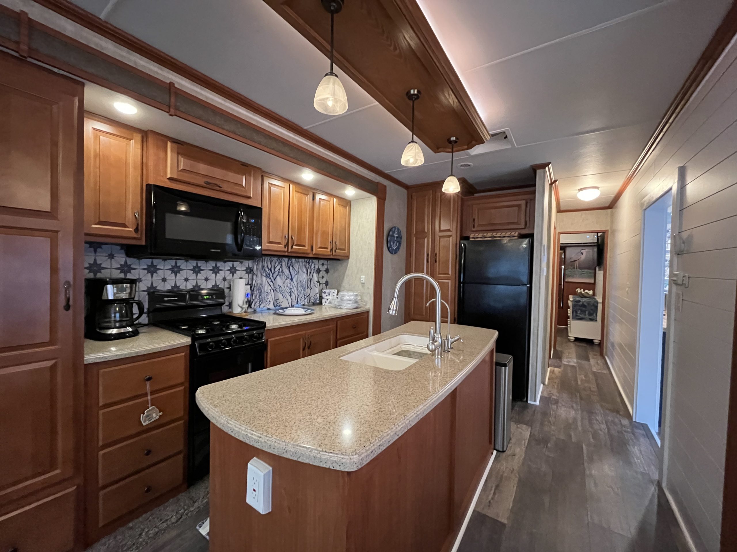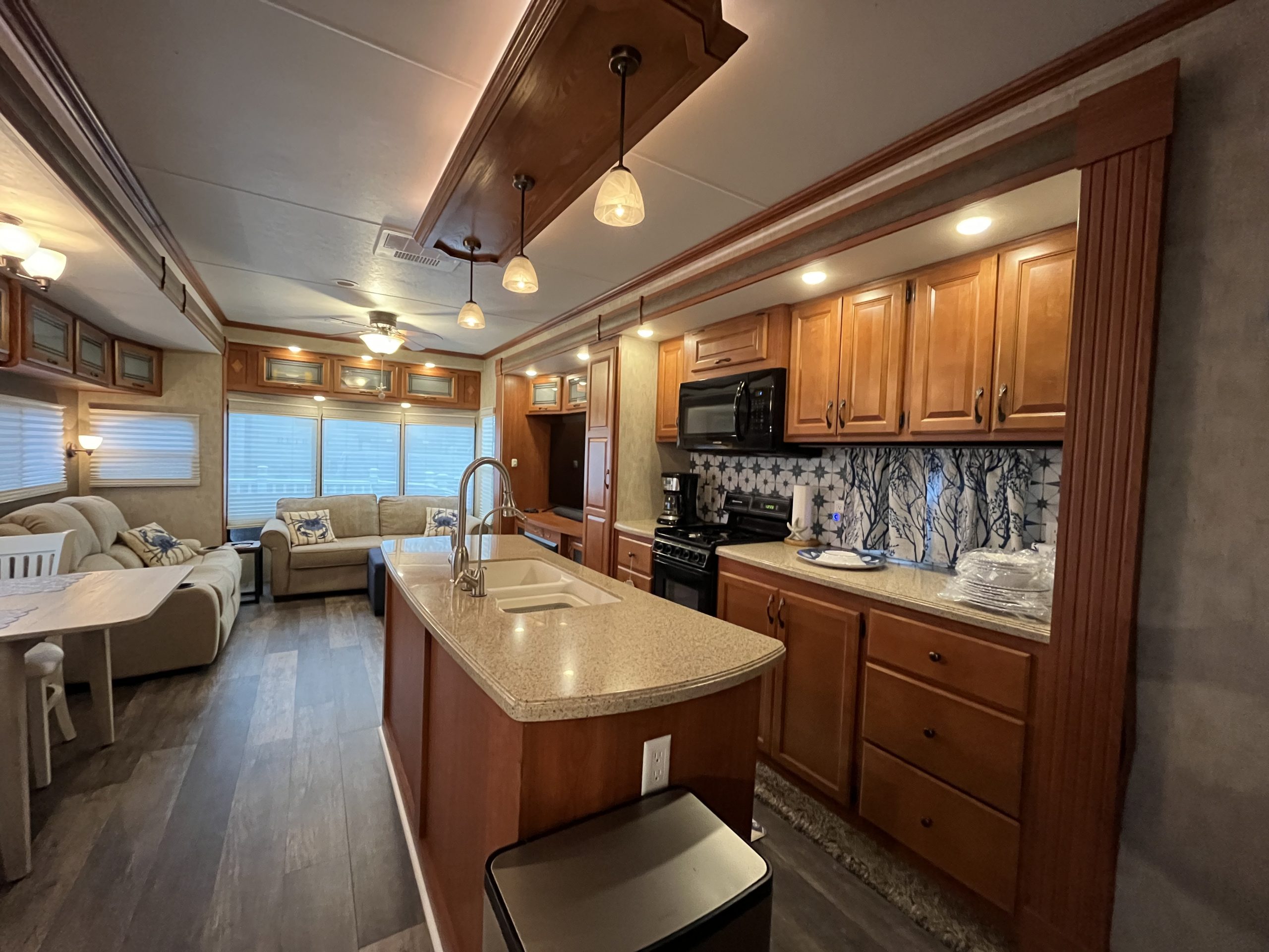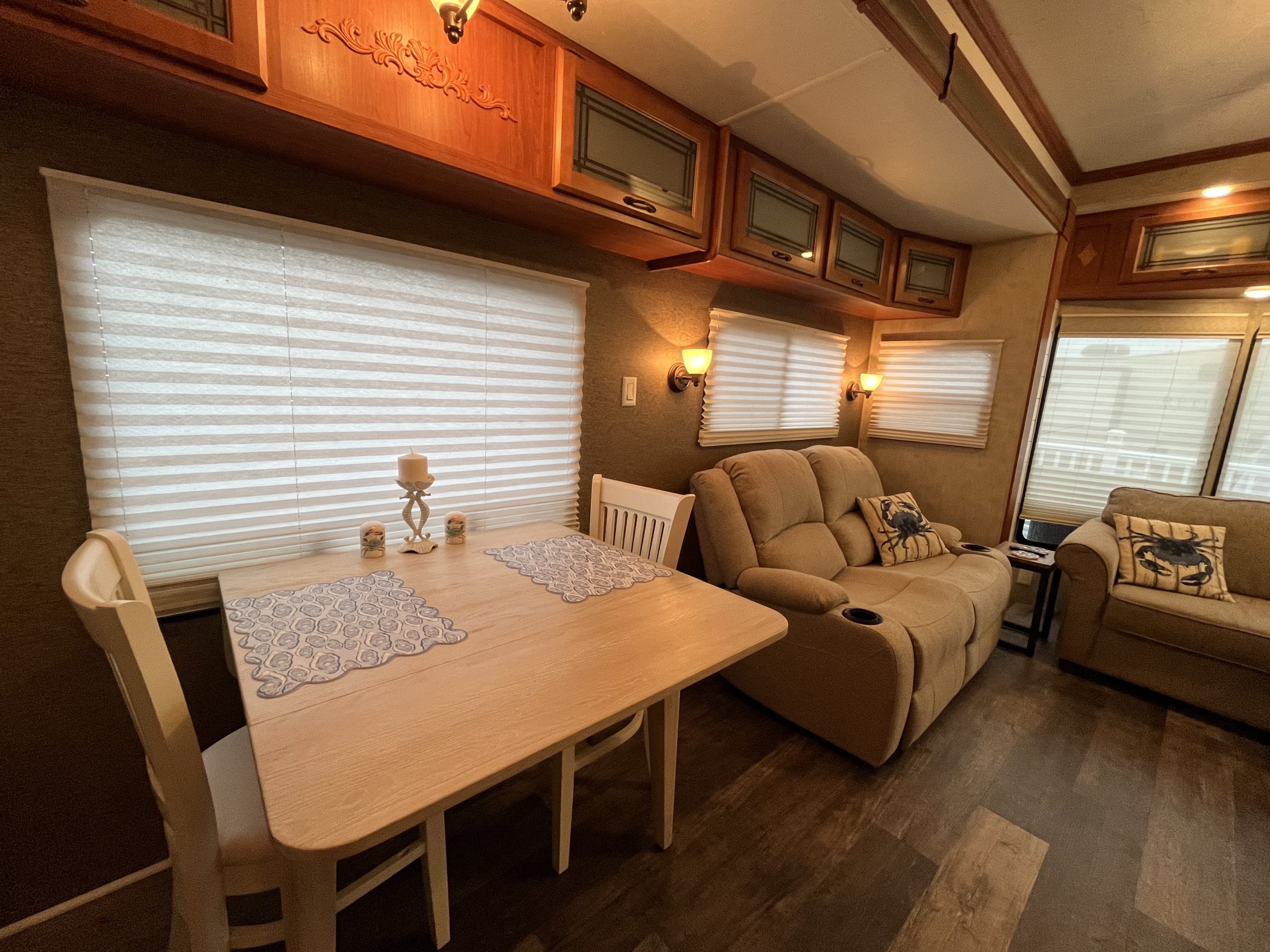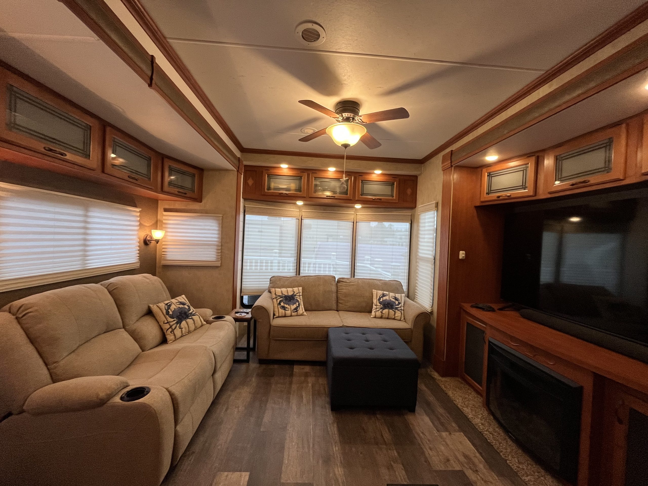 Inside, the home is being offered fully furnished, with no expense spared on quality and comfort. Spruce 08 offers two bedrooms — one featuring a California King bed with a new Dormeo mattress topper for ultimate comfort, and the second featuring a full-size bed, both with brand-new mattresses and furnishings that convey with the sale. You’ll also find three newer sofas, two of which are motorized recliners, three new TVs (2025), and a new kitchen table and chairs.
